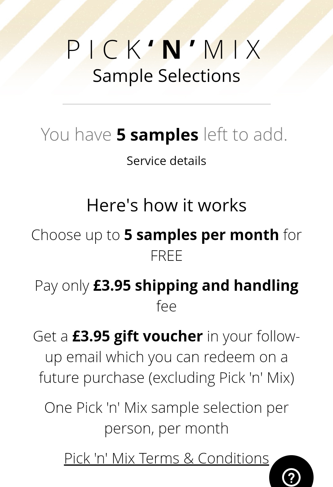 Now onto feel unique which I came across from watching a YouTube video of it.Its basically a pick n mix sample service were you get to choose 5 samples a month for £3.95 😍.Here’s were it gets better,once you’ve ordered your 5 samples for your very first time for £3.95,you get a email code for £3.95 off for next month 😍,so basically apart from your first time you get 5 sample products a month for free.